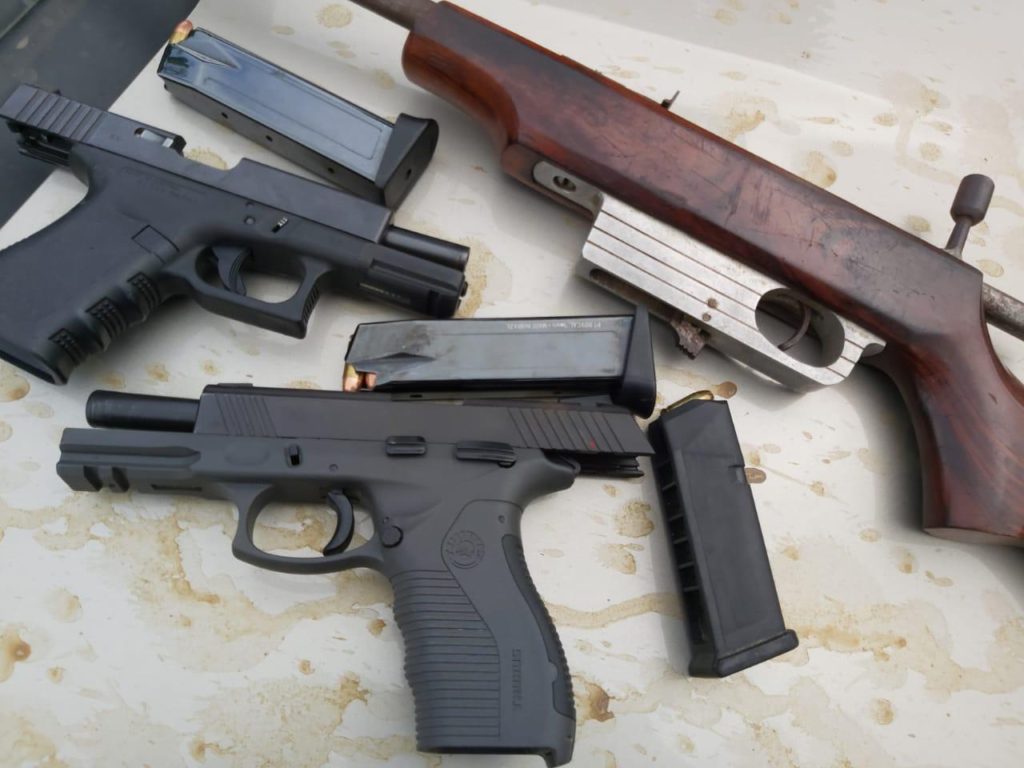 Ao ser interceptado e abordado, foi encontrado no interior do veículo, conduzido pelo suspeito de iniciais G. S. F., uma PT 9mm e três tabletes de uma substância aparentando ser pasta base de cocaína.